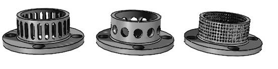 b、大圓孔主要用于普通混合工藝中減小物料顆粒尺寸。頭內(nèi)圓形通孔使介質(zhì)更好地作環(huán)形運(yùn)動,適用于中等粘度物料的大循環(huán)。