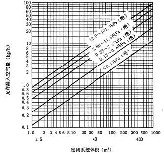 圖A.0.1 真空系統(tǒng)漏入空氣量計(jì)算曲線