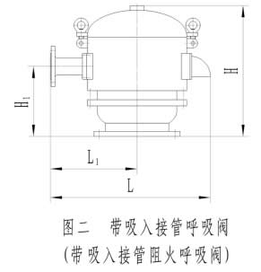 標(biāo)記示例:公稱通徑DN100、主體材料ZL102帶吸入接管阻火呼吸閥標(biāo)注:HLBFV2-100/Ⅴ。