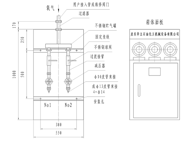 1、出廠時,氧氣點(diǎn)閥箱均做過嚴(yán)密性試驗(yàn),用戶安裝時箱內(nèi)任何連接部位不得松動,也不允許強(qiáng)力組裝,以免影響使用性能。