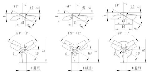 三葉旋槳式攪拌器主要尺寸