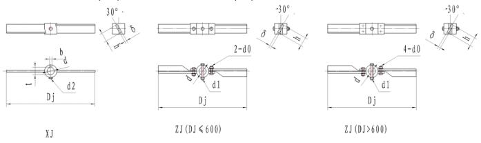 | DJ | d | D1 | h | h1 | 螺栓d0 | b | t | N/n 不大于 |